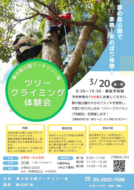 来梦之岛公园体验攀树的乐趣吧!使用特制绳索和安全装备攀爬大树,从不同的视角感受大自然。